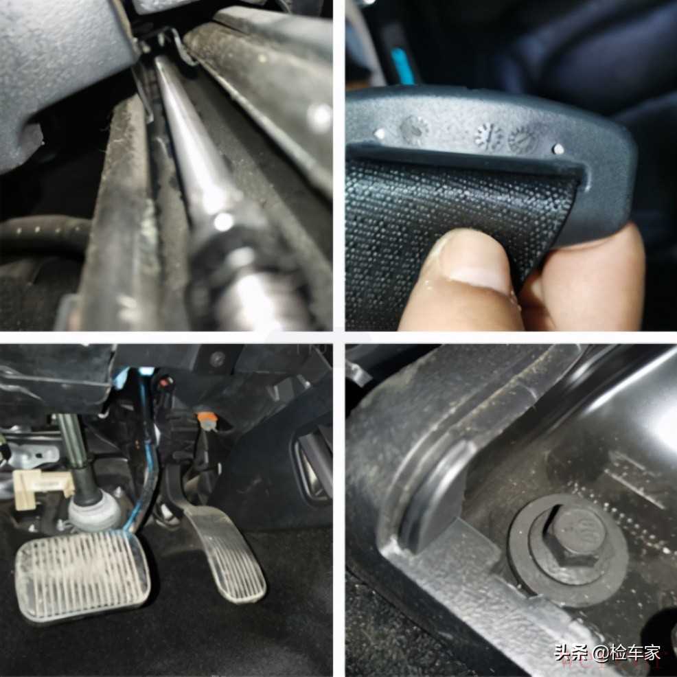 座椅下部、座椅螺丝、滑轨、方向机管住都没拆卸和生锈的地方,如果车辆涉水这些地方不去处理的话都会存在水渍或者锈迹,如果处理过有会拆卸或者明显的打磨痕迹的。