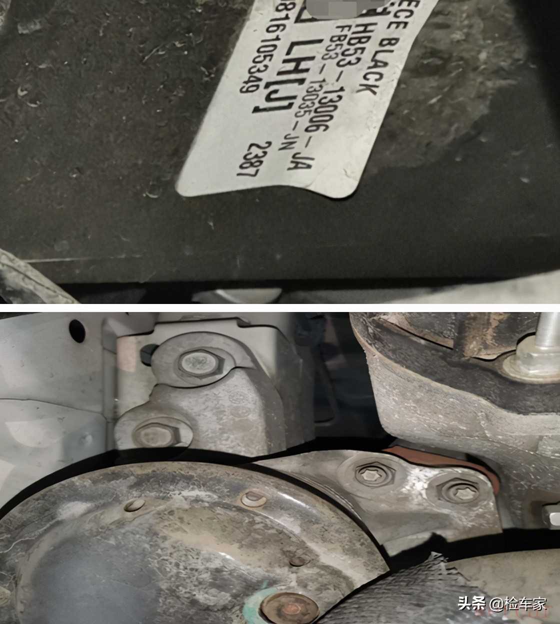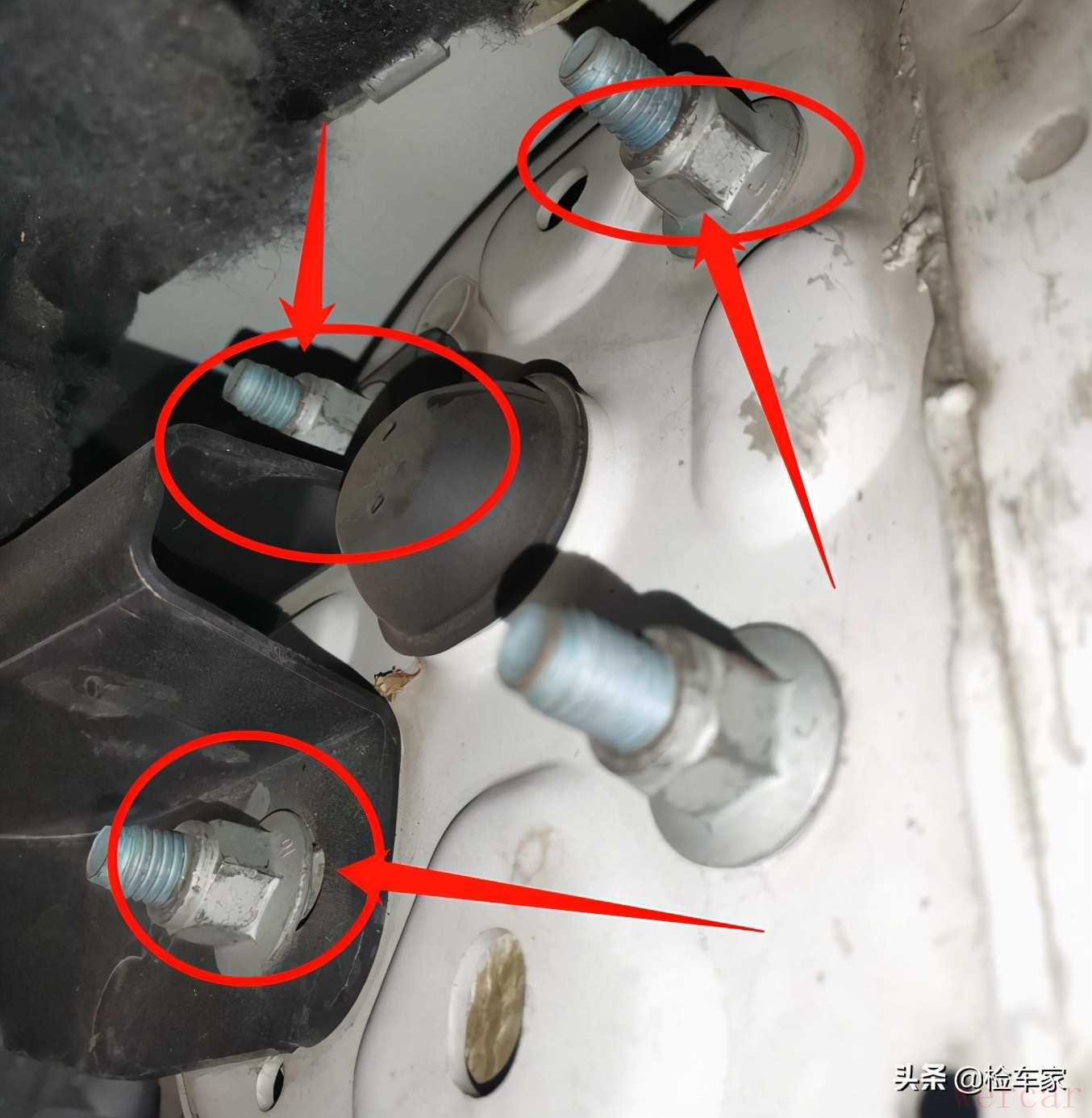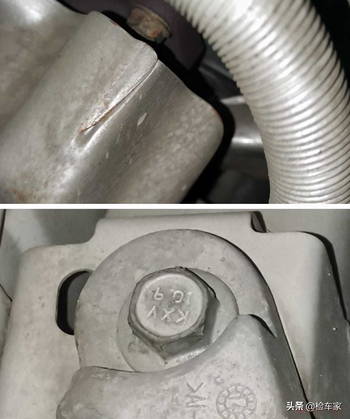 看到这里发现减震器下边固定螺丝也有拆卸的痕迹,并且是左前右前左后右后都有拆卸过的痕迹,但车辆又没有事故造成,根据春哥我曾经多年的维修经验来看有一种可能性很大了,那就是改装,估计车主买来玩儿的时候拿去改过吧,然后遇到更喜欢的车所以就送给家里人开的吧,哈哈哈有钱真好。