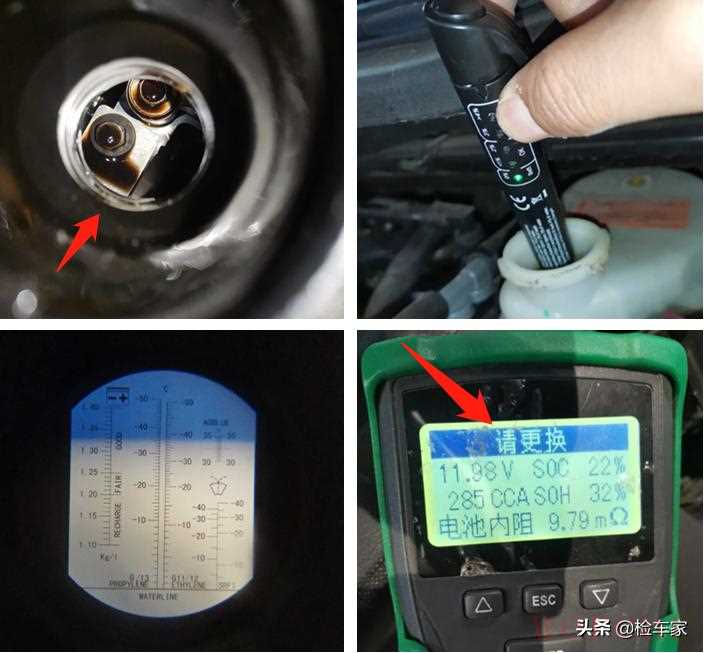 全车油液以及电瓶检测下来发现机油有点脏污了建议事后去4S店做个保养,电瓶也需要更换。机舱检测完,不过解决了前保险杠的疑点但又来了一个减震器的问题,这还不是小事儿,所以千万别想着看二手车有多简单,咱们继续检测看看还会有什么“惊喜”没呢?