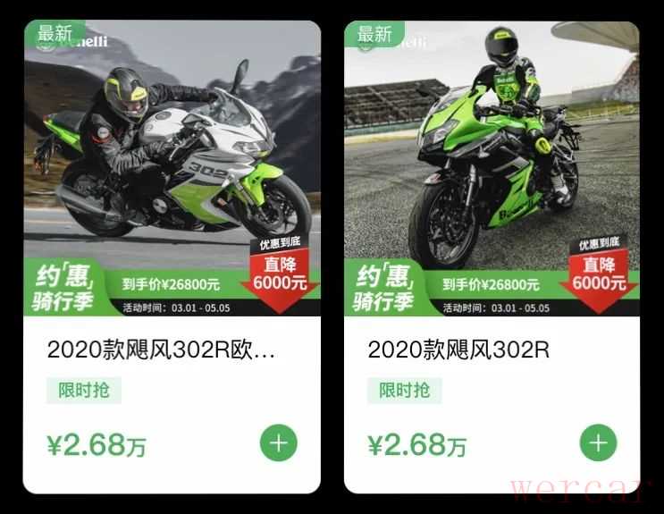 最近国内各大品牌纷纷排队降价,前几天刚说到春风,现在他的老对手贝纳利紧随其后。贝纳利虽然没有发文,但在贝纳利官方商城中就能看到,飓风302R和蓝宝龙302S降价最高达6000元,并且能看到活动时间也比昨天光阳的长。