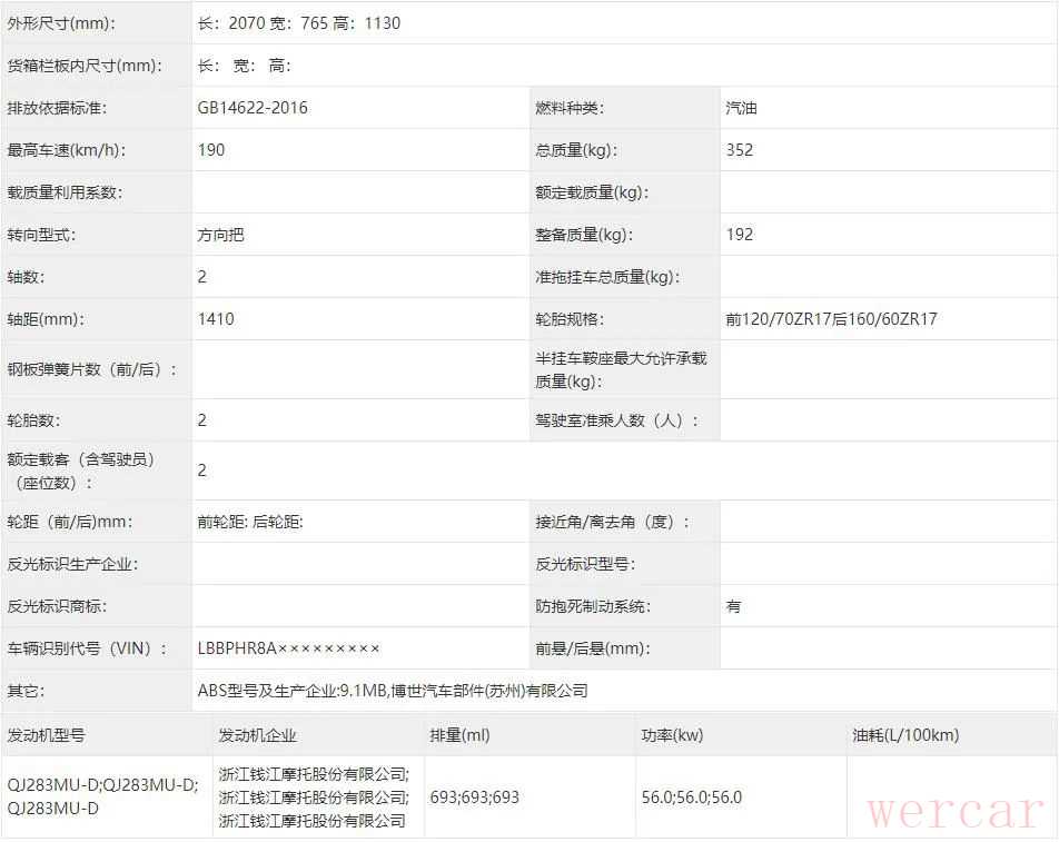 在3月份工信部新目录中,钱江集团一次带来了4款新车,其中包括改款贝纳利飓风302R,以及QJMOTOR的700双缸街车、600四缸ADV以及300V型双缸巡航。