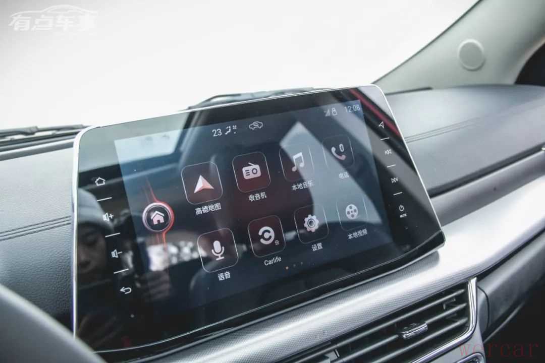 10英寸中控屏内集成了多项功能,不过整体操作还有进一步的提升空间,并且自带高德地图导航,支持百度CarLife。