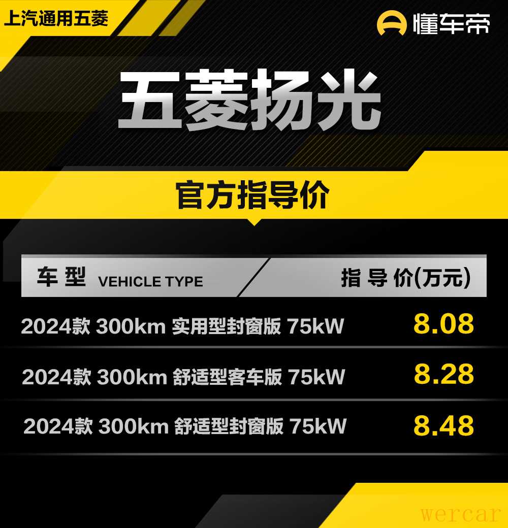 "新车 | 五菱扬光75千瓦车型上市,售价8.08万起,涨价1000元,续航300公里"