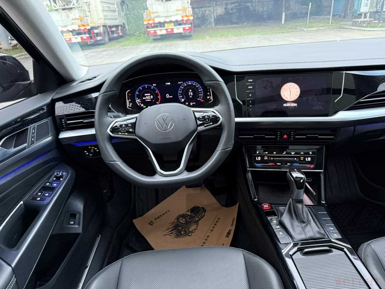 这辆帕萨特 2024款 380TSI 豪华版,定位是中型车,车身外观颜色是黑色,内饰是深色配色。累计行驶里程是1.50万公里,该车符合国VI排放标准。