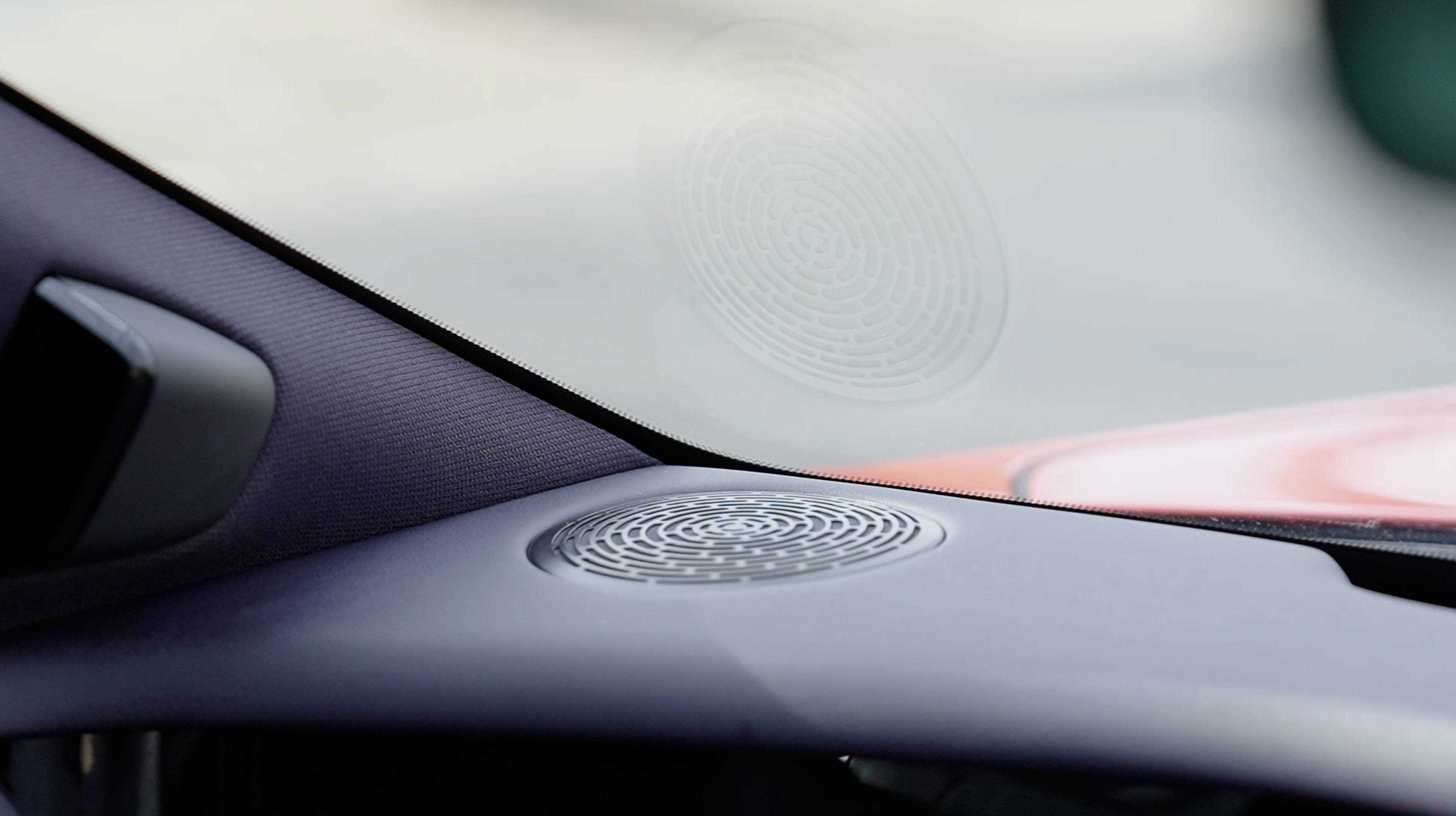 当然了,功率不代表一切,在声音单元的素质上,阿维塔 06 也是拉满了。全车喇叭都用上了钕铁硼磁铁,灵敏度更高,频响范围也要更广。其中高音球顶材质是动态表现更好的铝镁合金,中音和环绕扬声器用的是更浑厚的玻璃纤维,低音扬声器则是特殊的云母合成材质。
