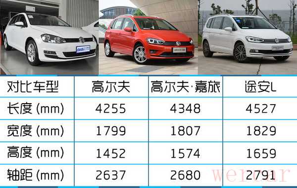 从车身尺寸对比可以看到,高尔夫·嘉旅的身材处于高尔夫和途安L之间,加大的尺寸使得内部空间得到提升,满足年轻人对于多样化生活的需求。目前来看,高尔夫·嘉旅很难找出市场定位和其完全相同的竞争对手,在“多功能两厢车”细分市场目前处于独领风骚的地位。
