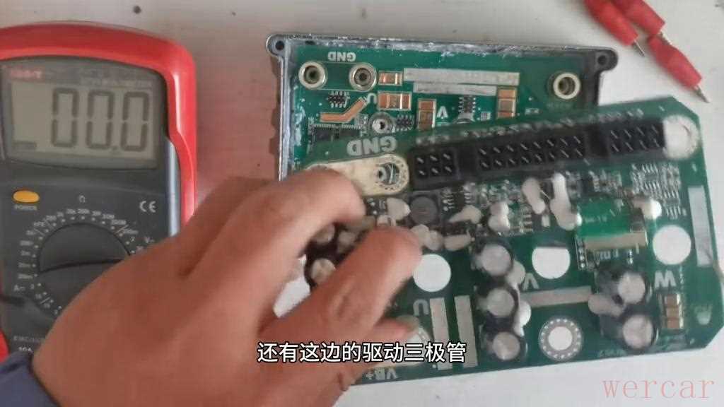 ·这是凌波的9号之上的控制器,经过排查,整个一项的功率管烧坏,包括背面的驱动芯片也烧坏,还有这边的驱动三极管。接下来就全部更换一下,再进行通电测试。