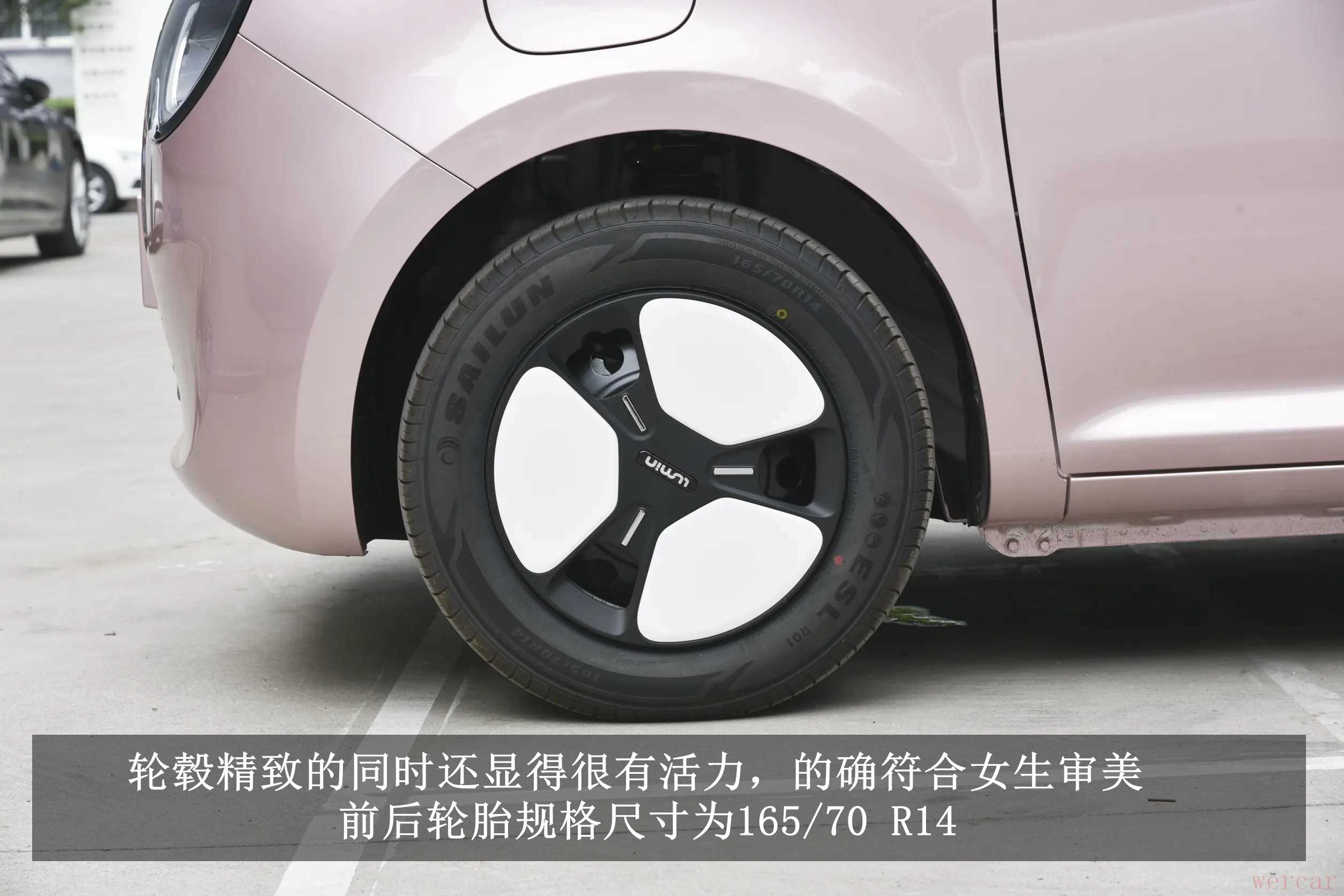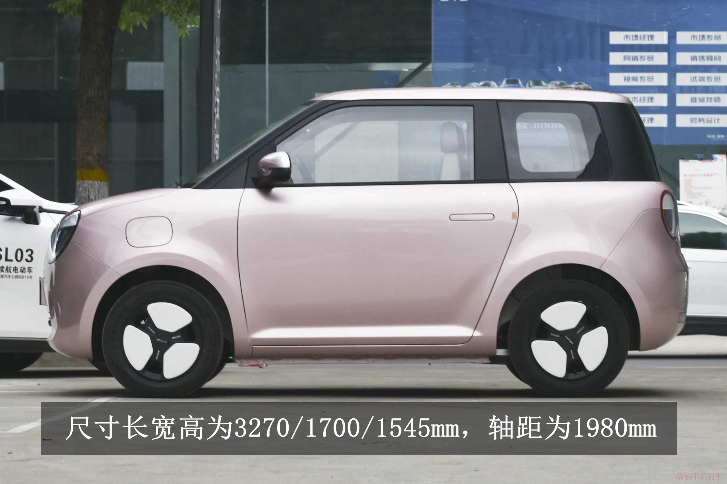 车身设计比较饱满一些,也使用了当下最为主流的隐藏式门把手设计,客观来讲的确很适合女生审美,长安Lumin车身尺寸长宽高为3270/1700/1545mm,轴距为1980mm,尺寸方面在同等级别车型中属于适中,底部轮毂看上去很是精致,能和整体很好地呼应在一起。