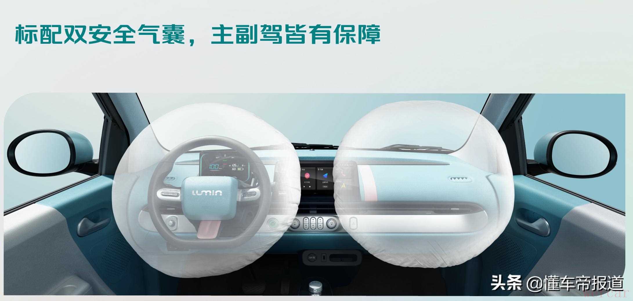 同时,车辆还提供与车身同色或白色、黑色的车顶,为车辆增添了设计感。前大灯具备流水灯光效果,靠近迎驾,离开送宾;充电时支持呼吸式灯光,部分车款配备LED日间行车灯。