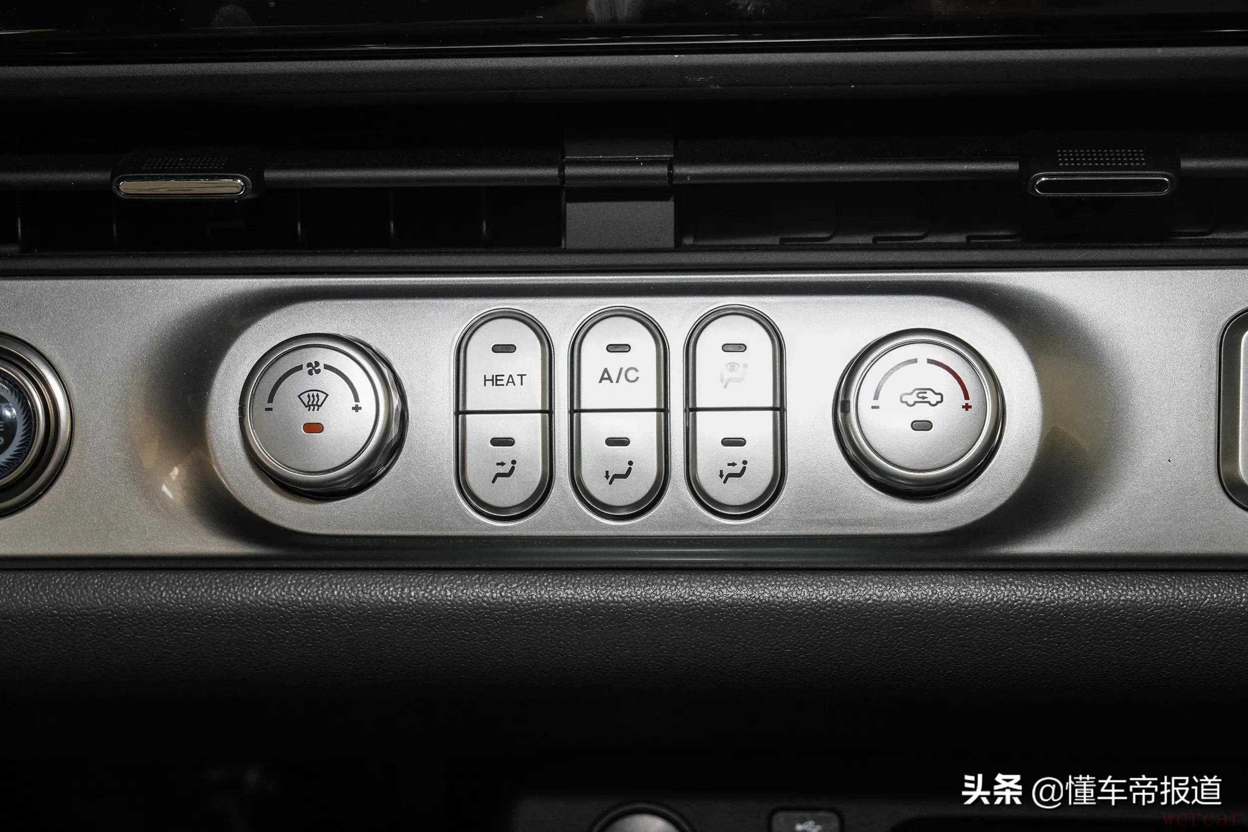 中控区域保留了空调控制旋钮和实体按键,换挡旋钮、车窗启闭键设置在中央操作台,维持操作的便利性。三辐式方向盘带有彩色饰条装饰,可实现音乐播放与切换、接打电话与调节音量等便捷操作。