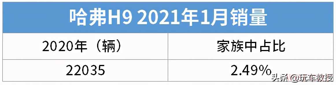 2020年,哈弗H9的销量为22,035辆,占哈弗家族2.49%的市场份额。这样的数据或许还不抵哈弗H6一个月的量,但对于哈弗,对于整个长城汽车来说,哈弗H9的重要性不是几个数字就能体现的。