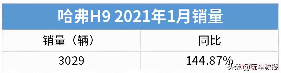 从2014年上市至今,这一代哈弗H9虽然已经进入产品生命周期末端,但仍在2020年取得了64%的增长,是哈弗家族乃至整个国内SUV市场,表现最抢眼的几款车型之一。而这样的增长势头继续延续到2021年,在今年1月份,哈弗H9销量为3029台,较去年同期增长144.87%。