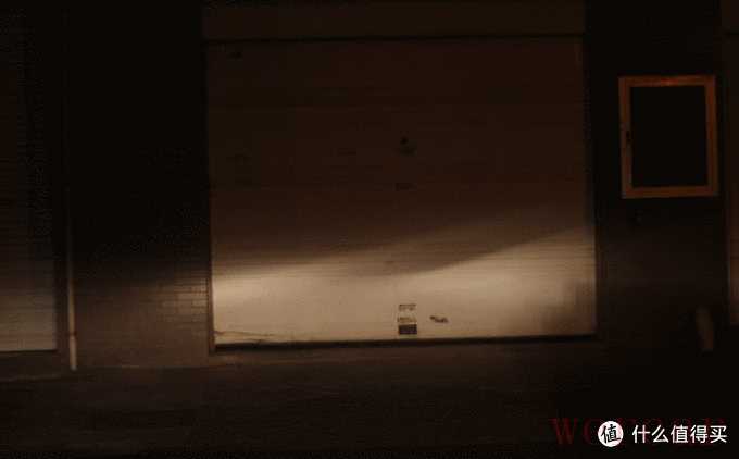 在这种灯光下,门上被无良广告商贴的小纸条(黑底白字,果然逆天)是这种效果。这张小标签我拍的时候挡了一部分光线,所以,后面我改了站位,拍摄的机位和这个不同,但是后面的机位保持了一致。