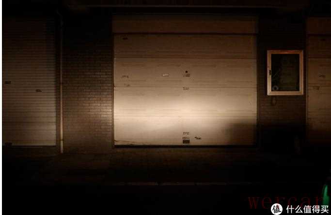 晃眼,不太舒服。在远光灯下,看墙上的文字,差别不大。