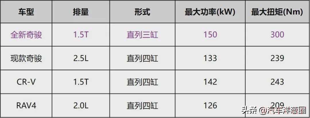日产不可能不知道,国人对于三缸机是什么态度,敢于在一款热销车型上搭载三缸发动机,只能说明日产对这台发动机有着足够的信心。我们先抛开三缸,来看看参数:150kW、300Nm,功率和扭矩都要高于现款的2.5L自吸发动机,与对手相比也有一定的优势,就算“买发动机送车”的本田,同样的1.5T排量,而且还是四缸机,也没有新奇骏的参数那么优秀。