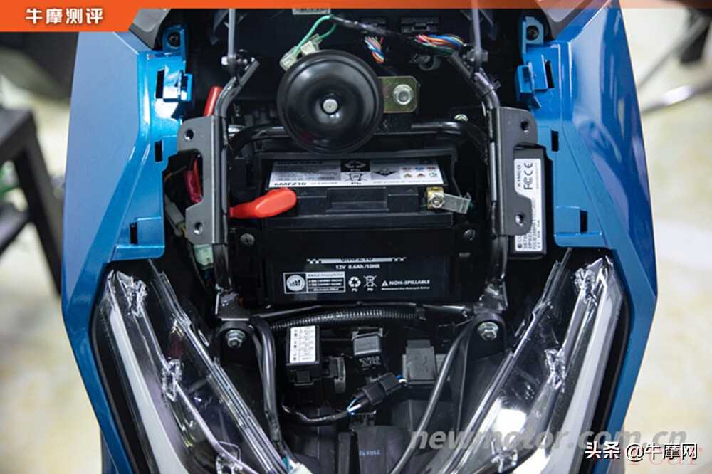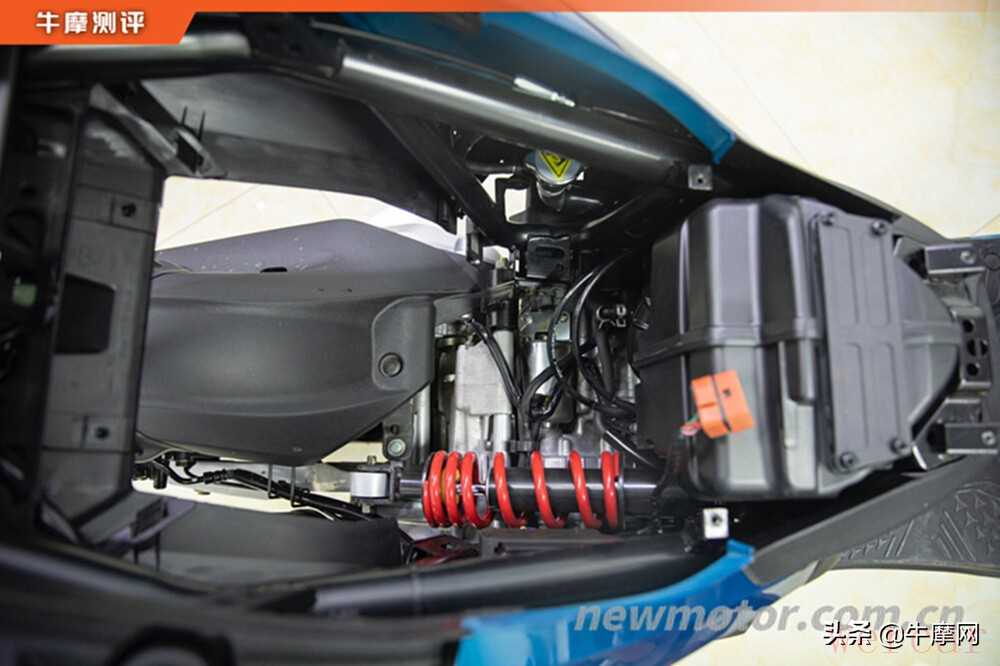 为此,光阳还设立了独立的机油观察口,这在踏板车里不容易看到,同时,还把水冷散热器设计在车体左侧,进一步压缩空间,车体左右配重也更加合理化。