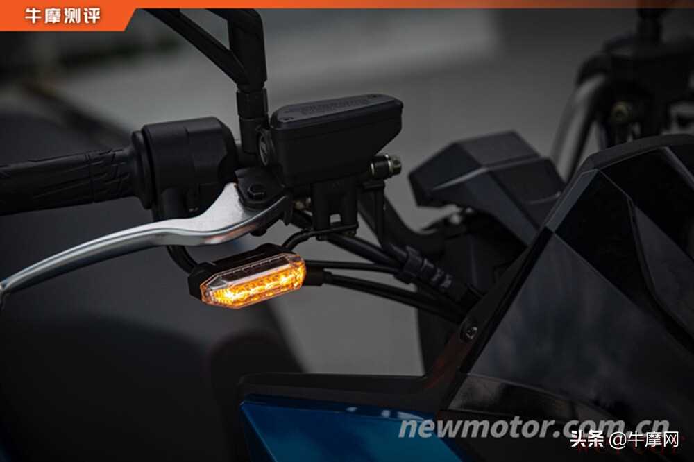 独立的高位LED转向灯,设计在手把下方,随车转向,相对来说辨识性更好。