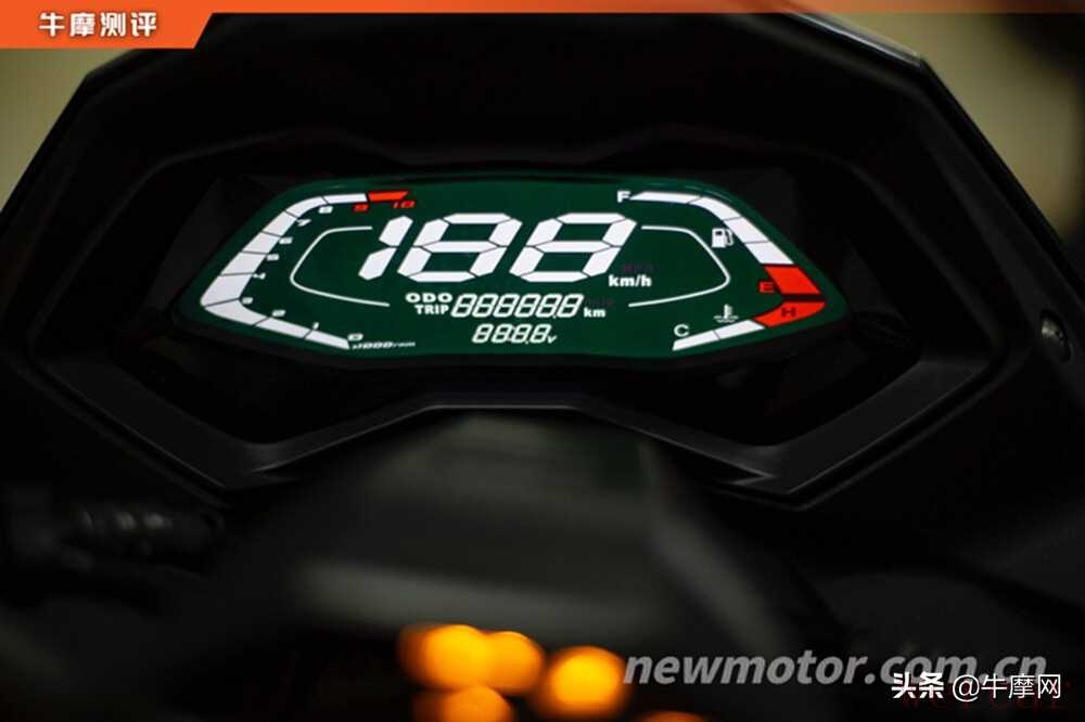 KYMCO-KRV 180的车身长宽高为1960x755x1115mm,轴距1400mm,搭配前后13寸轮毂,车身尺寸堪比200级踏板车型,但车身线条硬朗,做得非常紧凑,车头呈俯冲之势,精悍的尾部上扬,运动小钢炮的感觉营造得很到位。