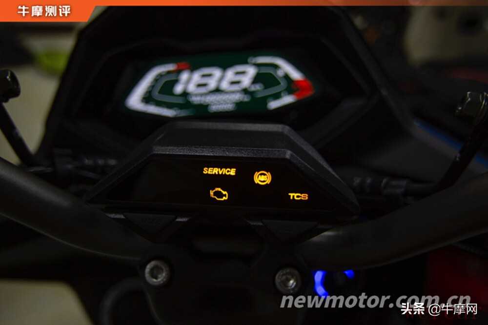 仪表采用大小双屏设计,大的(上图)主屏幕显示油量、转速、速度、里程等常见信息,小屏(下图)负责ABS、TCS、转向等提示功能,分工明确,有高级感。
