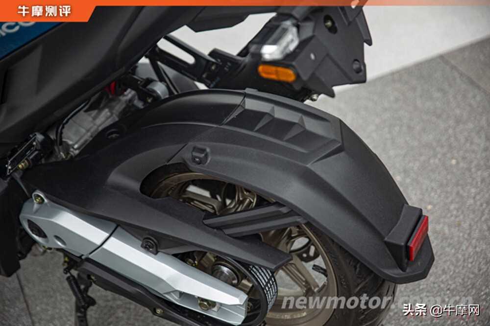 大包围后挡泥板,为了看起来不至于太单调,表面设计有纹理,分段式设计也可以根据个人需求拆掉。