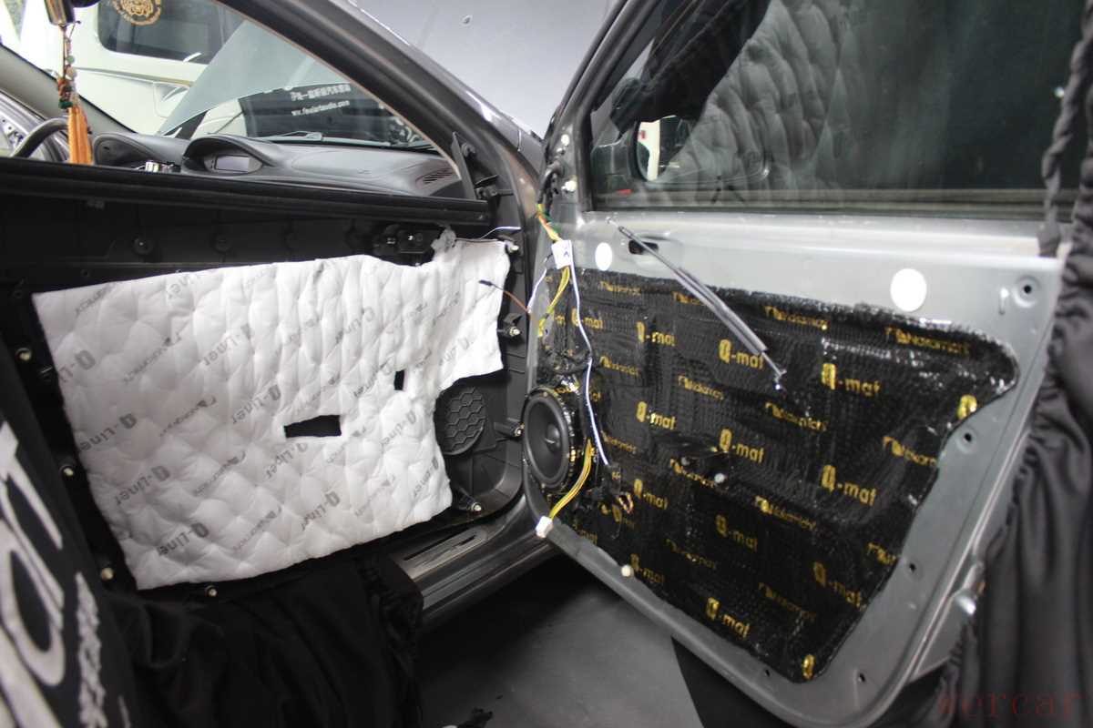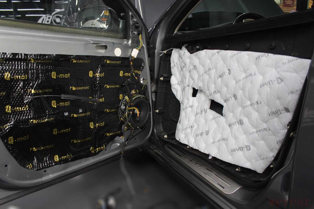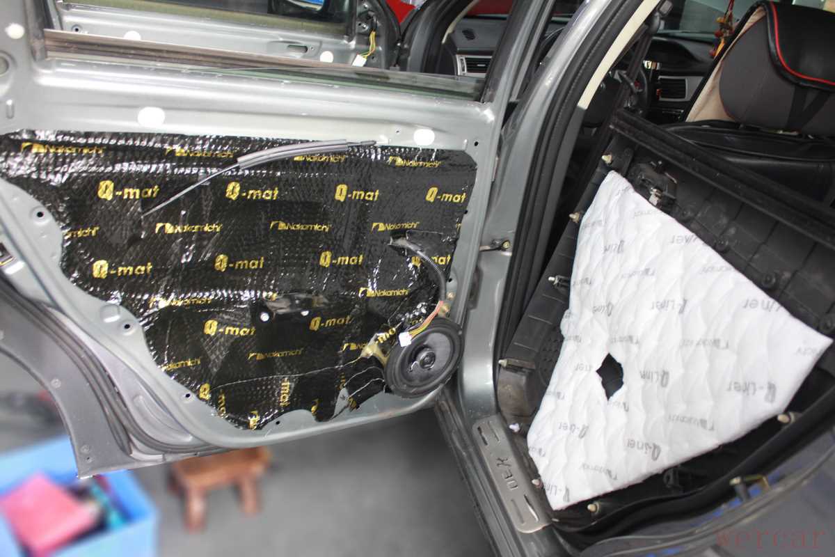 首先得有隔音降噪升级,进行的是四门三层隔音施工。