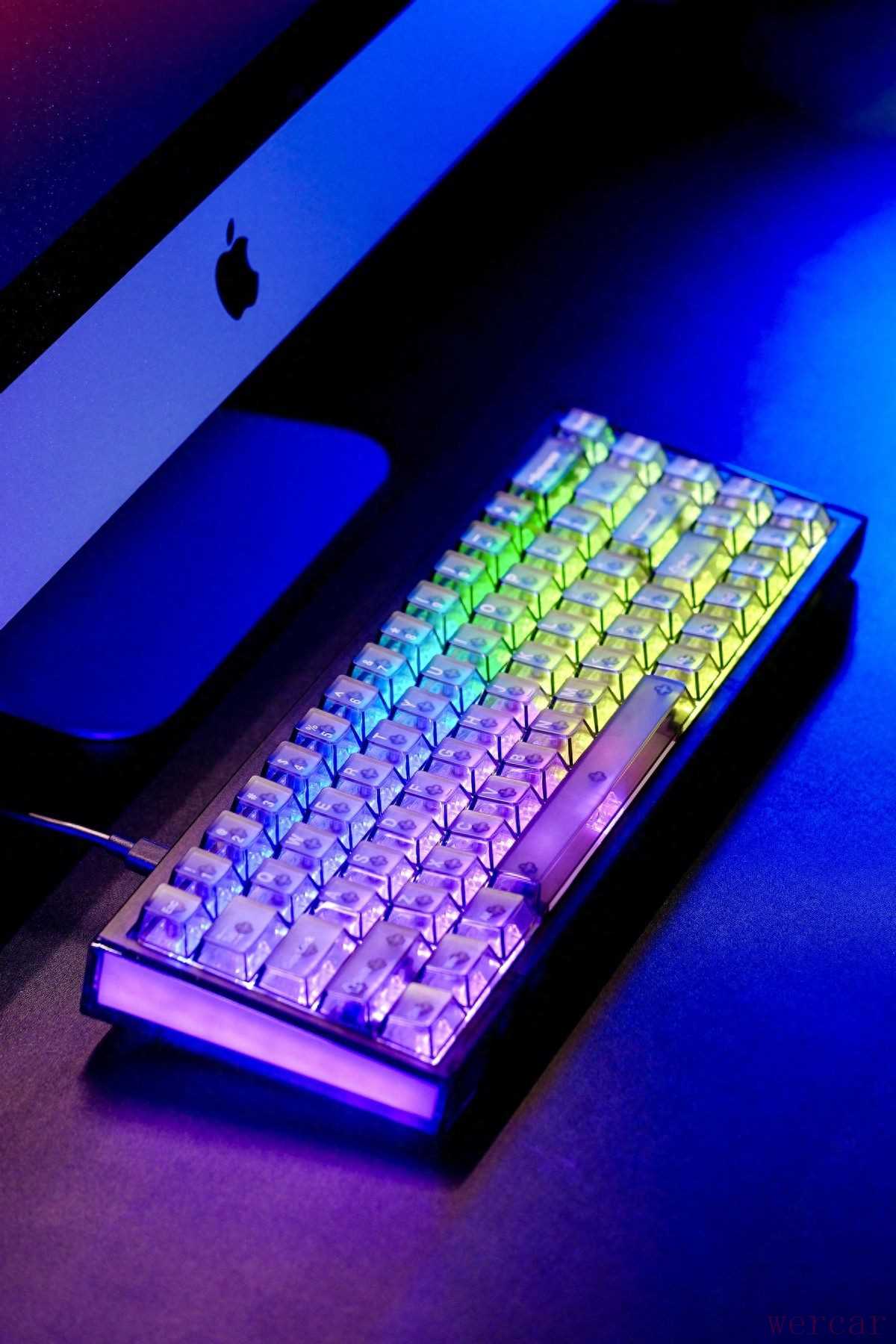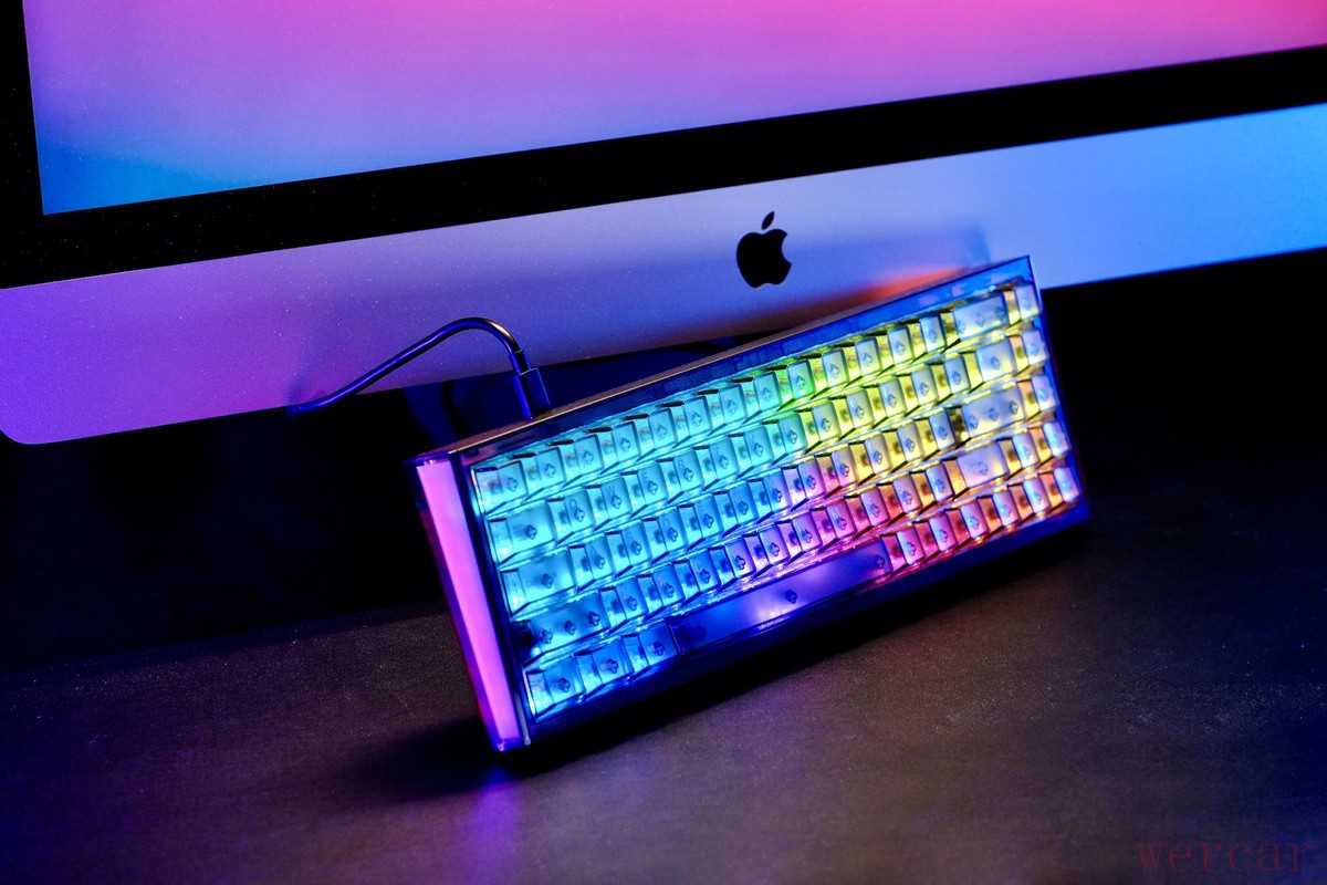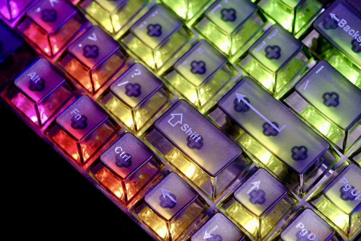 键盘的外壳使用高分子透明材质,光线经过自然漫反射后变得更加柔和,不刺眼。哪怕是在深夜工作,灯光也依旧温和,不会造成视觉疲劳。