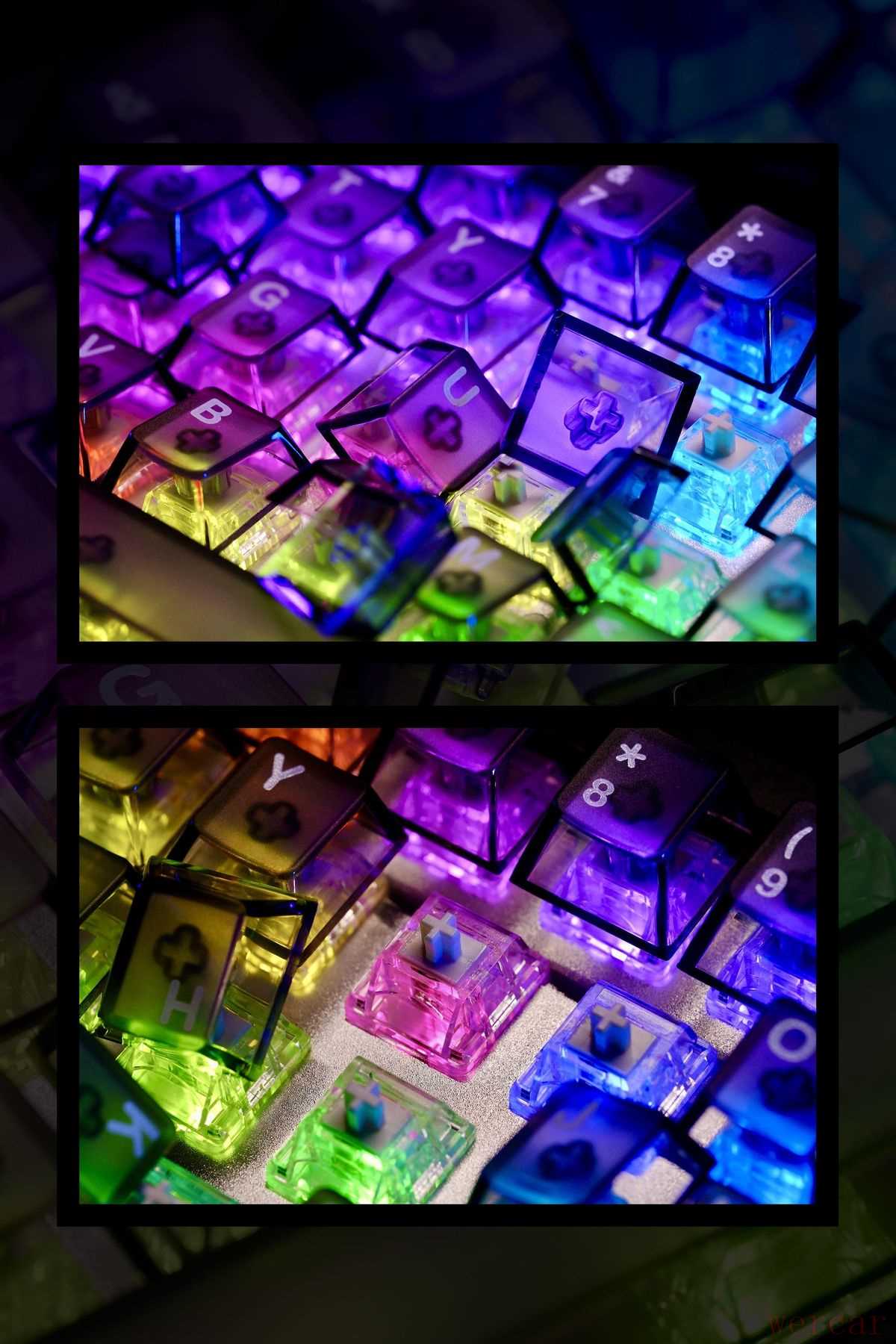 此外,它还支持 20 种 RGB 灯效,从呼吸、波浪,等模式皆可轻松切换。键帽采用雾感透光材质,轴体全透结构让光线更均匀饱满。如果友友们也喜欢“氛围感桌搭”,那 COOL 68 基本能满足拍照和日常使用的双重需求哦。