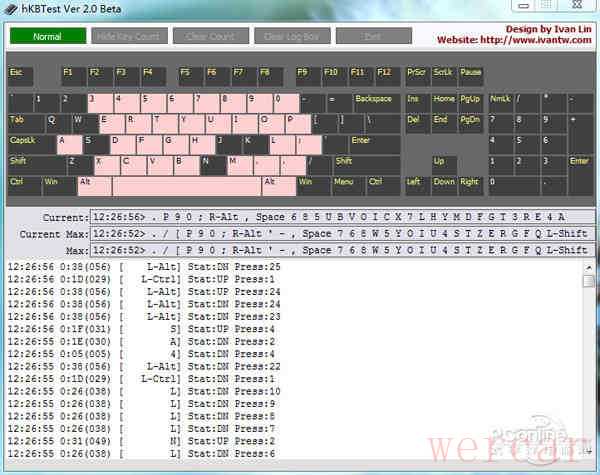 在按键冲突理论测试中,我们使用KBTest作为参考用软件,测试达尔优S600 RGB背光机械键盘的最大按键数。从KBTest测试成绩来看,达尔优S600 RGB背光机械键盘支持全键无冲(由于软件显示限制,仅显示32键),基本可以应付市面上的所有主流游戏,满足了大多数玩家的需求。