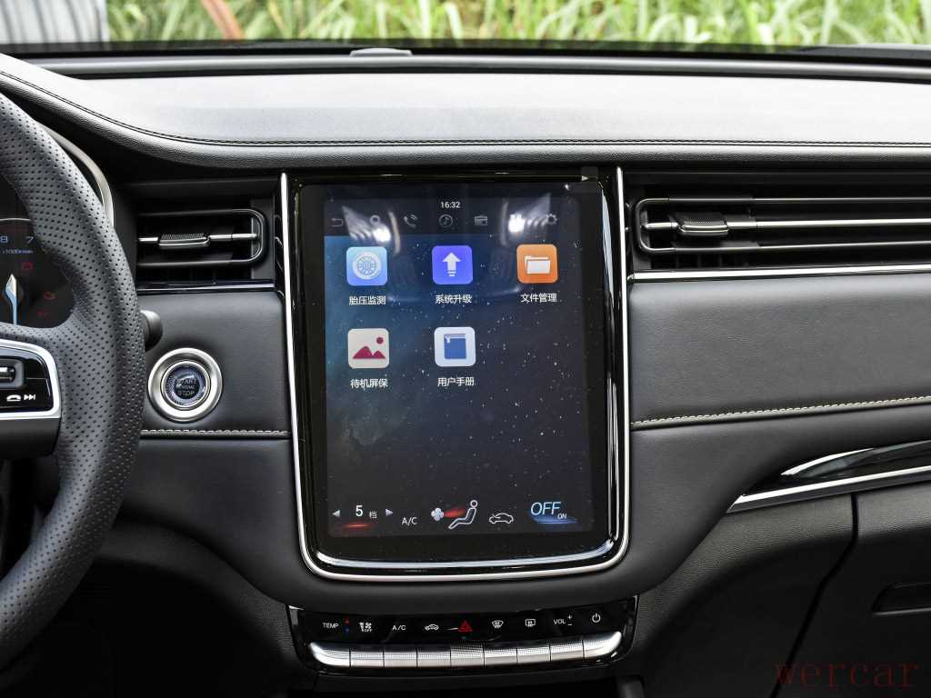 进入车内,整个中控台比较简洁,贯穿式空调出风口增加层次感。7英寸全液晶仪表盘配合10英寸中控触摸屏,也为整车营造出科技氛围。内饰用料方面,中控台上方采用搪塑材质并辅以缝线设计,而乘员周围区域则使用皮质进行覆盖,无论从观感还是触感来看,都属于同级出色水平。