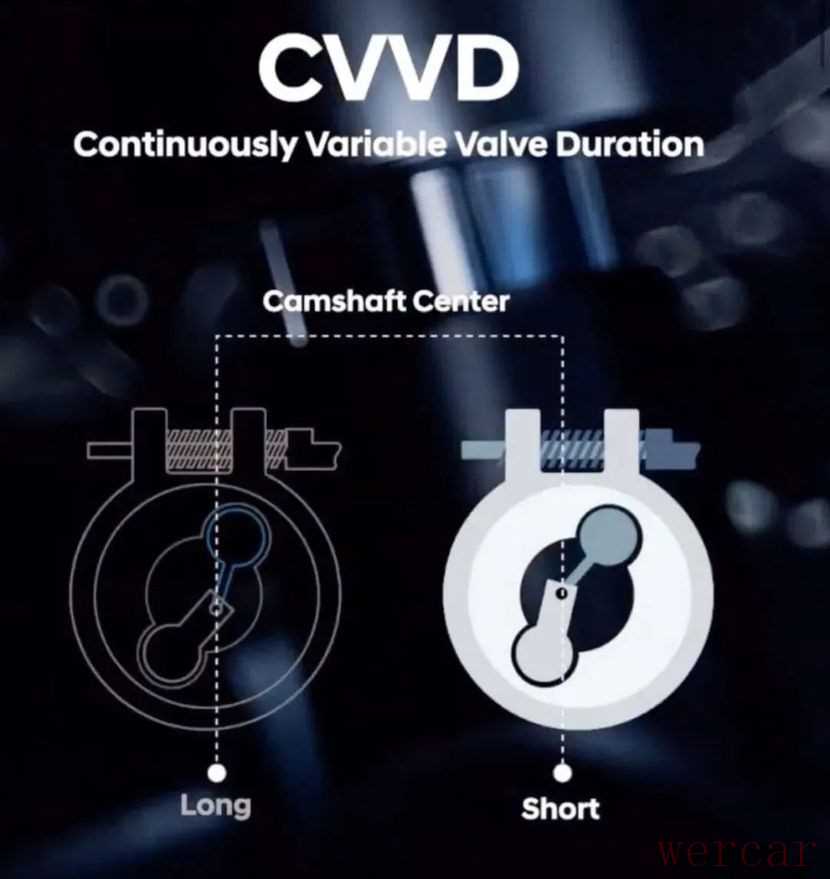 现代这台发动机在技术上最亮眼的,就是搭载了全球首创的连续可变气门持续系统CVVD技术。