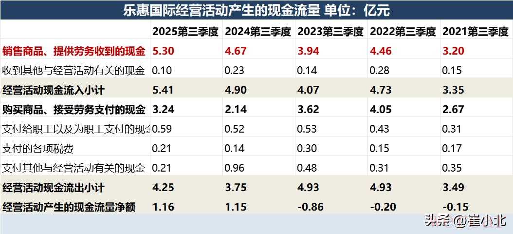 今年第三季度,乐惠国际实现营收3.34亿元,同比增长20.89%;从经营现金流看,今年公司销售商品收到的现金和购买商品支付的现金明显增多,反映出公司业务规模在扩张。