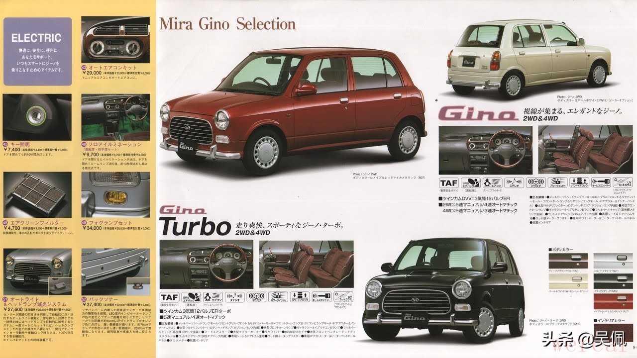 差点忘了还有最最最最重要的一点,就是它的性价比。1999年买一台40周年纪念版MINI要价229万日元,按当时汇率算个大概,得16万4193元。而顶配的Mira Gino叫价124万8000日元,也就8万9481元6毛的样子。是不是很划算?