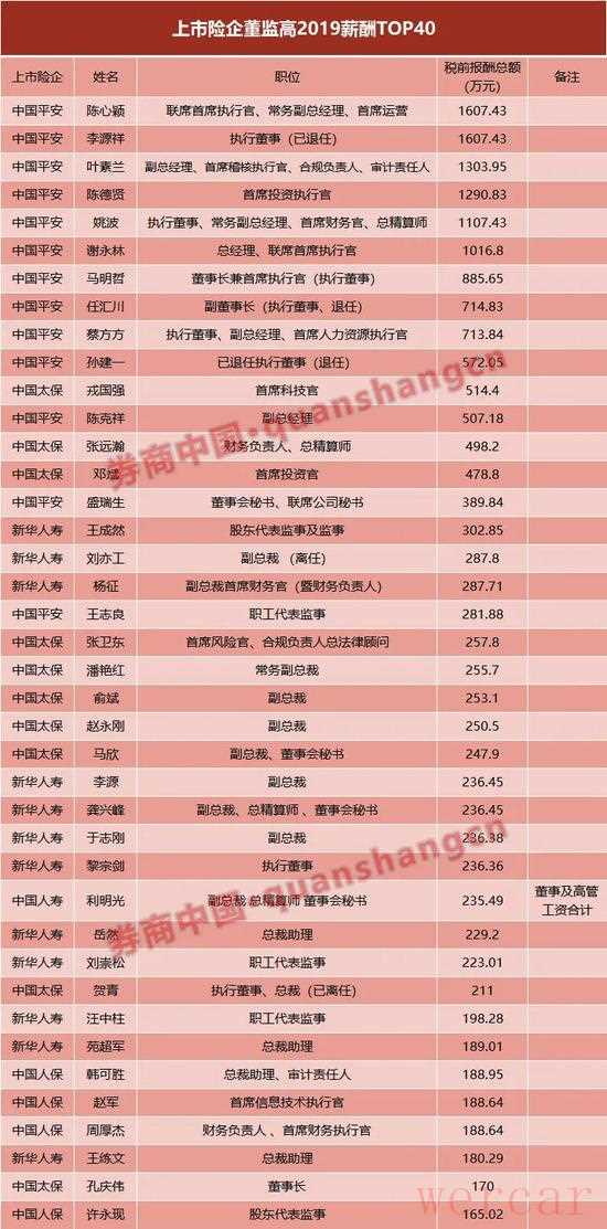 上市公司中,谁家薪酬最高?谁家最低?谁家高管挣最多?随着七大保险公司相继公布2019年财报,券商中国记者在年报中找到了这些问题的答案。