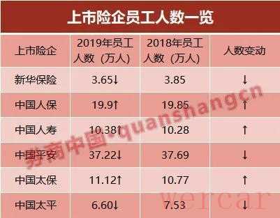 上市险企中,以新华保险为例,因为实行“减员增效”,人均薪酬明显增长,这种高质量的薪酬体系值得关注。年报显示,截至2019年12月31日,与公司(寿险总公司及35家分公司)签订劳动合同的员工共有36504人,较2018年减少了2038人。