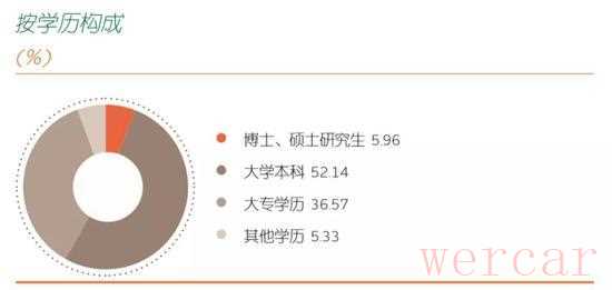近年,保险公司员工的学历在逐年提高。在2019年下半年,《2019中国保险中介市场生态白皮书》就已经提到,保险行业的门槛或因行业压力的凸现而提升,呈现高学历化等趋势。本次中国平安及中国太保年报中的员工学历构成也印证了这一点,本科学历占比超50%。