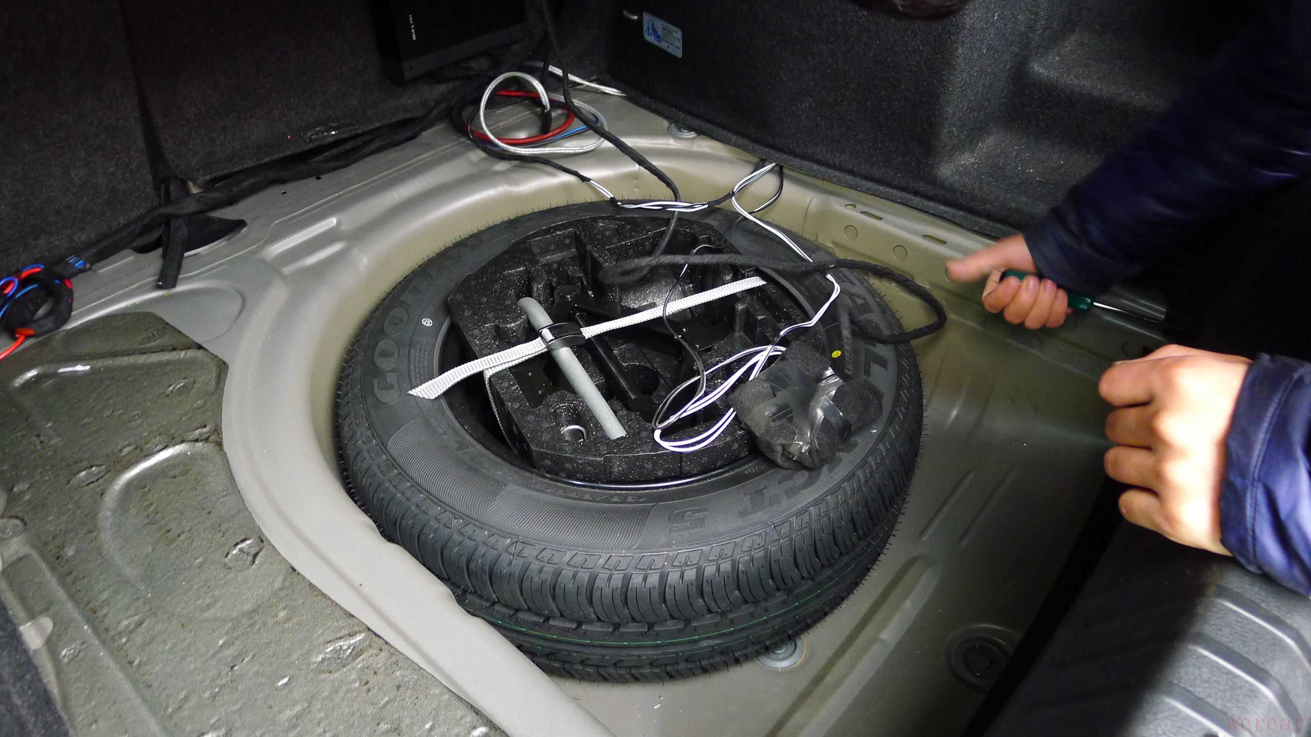 导航排线的同时,安装倒车摄像头的工作也在同步进行中。