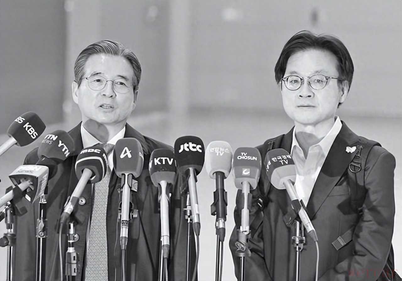 22日,韩国总统室政策室长金容范(左)和产业通商资源部长官金正官再次启程赴美,就关税问题磋商。韩国《中央日报》称,此举是为亚太经合组织(APEC)会议期间计划发布的韩美总统会谈联合声明进行协调。(视觉中国)