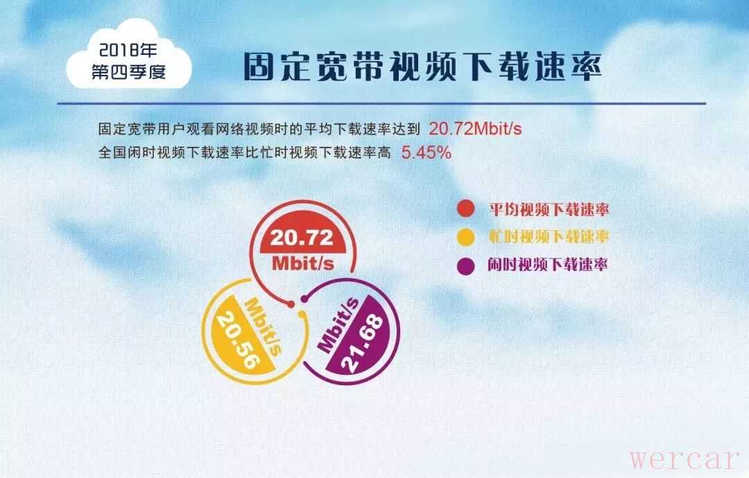 此外,报告同期还发布了2018年第四季度我国固定宽带用户的网页平均首屏呈现时间为0.93秒,网络视频平均下载速率达到20.72Mbit/s,也均有一定幅度的提升。