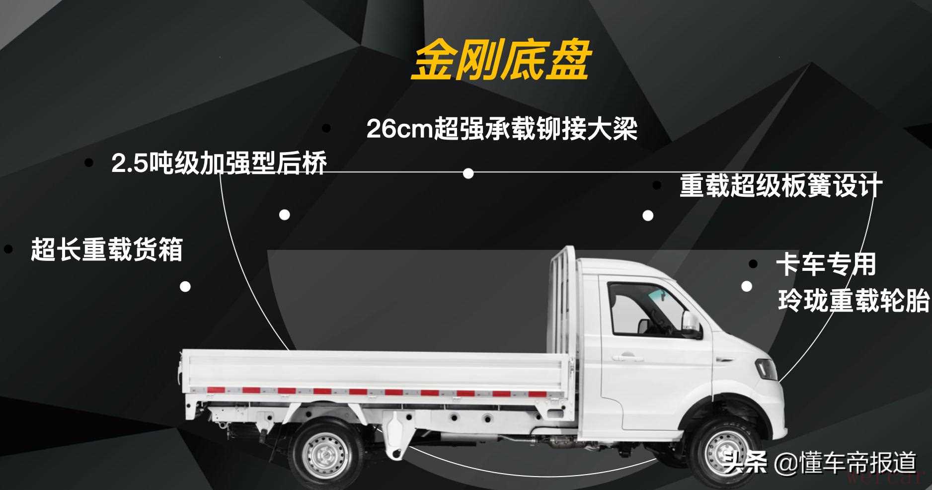 从车型售价和市场定位来看,新车的主要竞争对手锁定五菱荣光小卡和东风小康C31/C32等车型。与竞争对手相比,金杯金卡S3的货箱尺寸更大,载货能力更强,而且厂家还给出了8年或者20万公里的超长质保,对于小卡车来说,这样的质保政策也展示出了厂家十足的诚意。