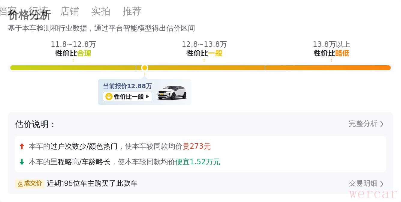 这辆揽胜极光 2020款 249PS R-DYNAMIC SE 运动科技版在二手车市场上,售价是12.88万,同时本车的热度也很高,因为它的性价比高,深受车商和客户的喜爱。