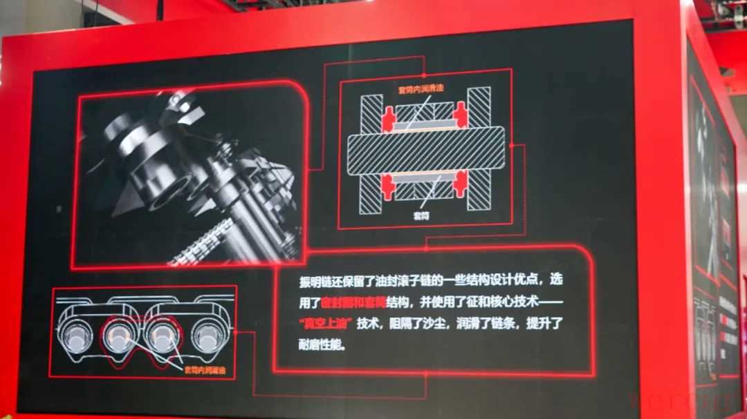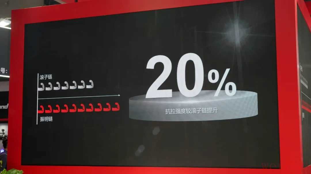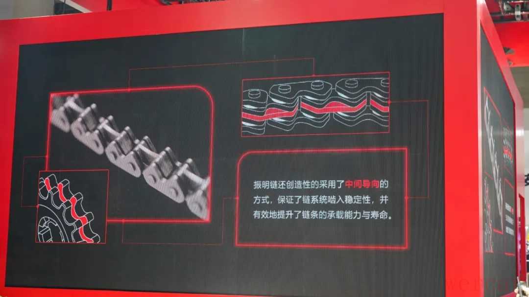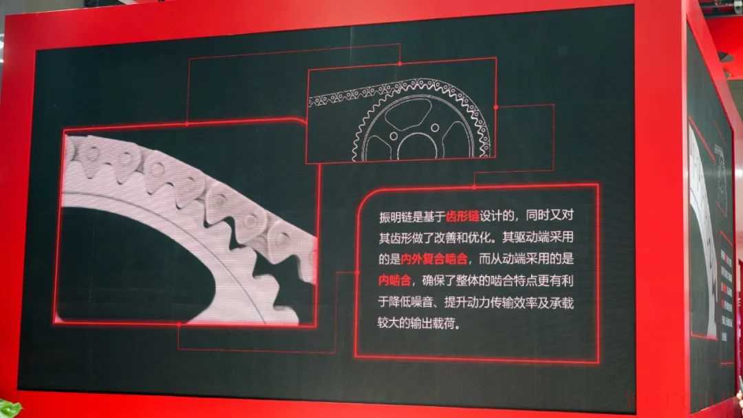 很多人都会想,如果能把链条和皮带的优点结合起来,那将带来传动的一次重大变革,作为中国摩托车链条的行业翘楚,征和链条早就立项开启了这项研究,并于本次摩博会上发布了他们的研究成果——振明链。