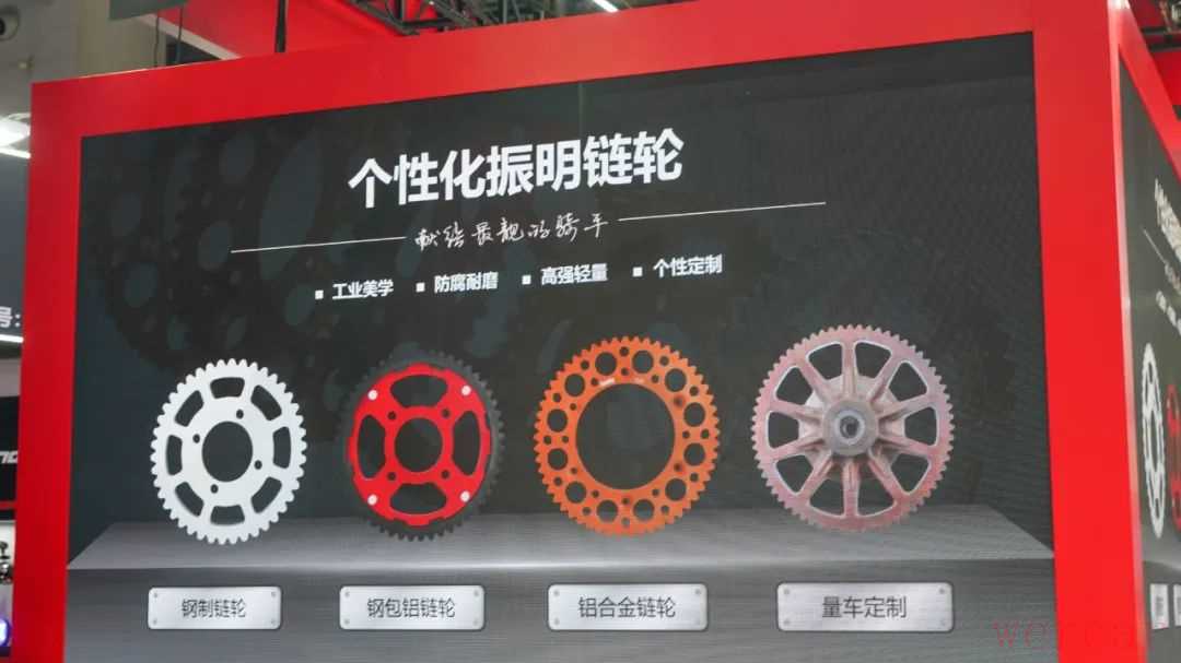 振明链链轮采用优质材料,高强度轻量化设计。钢制、钢包铝、铝合金链轮多种表面处理工艺可供选择。色彩绚烂多样,耐磨性及抗拉强度优越,适用于越野、电摩、赛车、重机等不同车型使用。