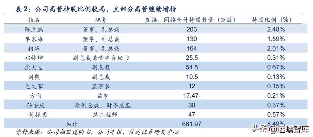 自成立以来,公司重视研发以及人才的培养,目前已经形成了一支经验丰富的管理团队。公司通过核心高管持股,很好地实现了管理层与公司长期利益绑定。同时,今年6月份公司7位董监高先后完成股票增持计划,合计增持10.97万股,彰显对公司未来稳定发展的良好预期与信心。目前,除实控人外,管理团队直接或间接持股合计约8.49%。