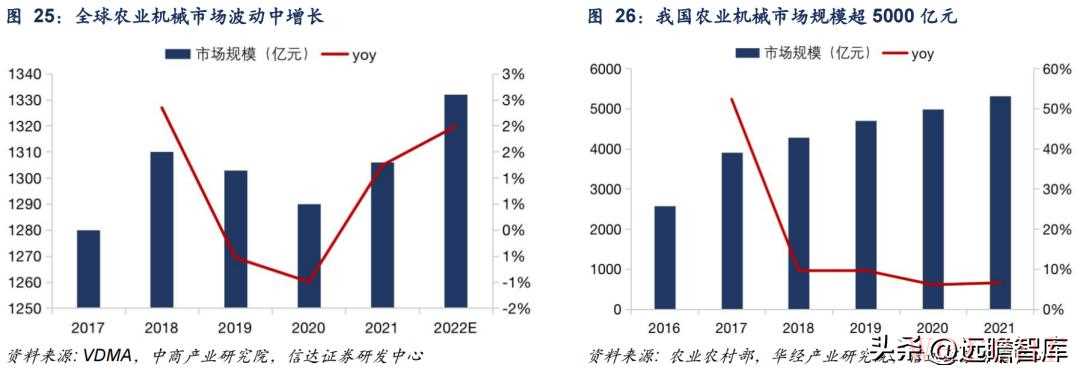 粮食安全问题倒逼国内外农业机械市场规模增长。疫情之下,国际粮食市场波动频繁,部分国家限制粮食出口,粮食安全问题日益凸显。农业机械作为转变农业发展方式、提高农村生产力的重要基础,是保证粮食产量稳步提升的重要动力,提升农业机械化水平成为保障粮食安全中的重要一环。