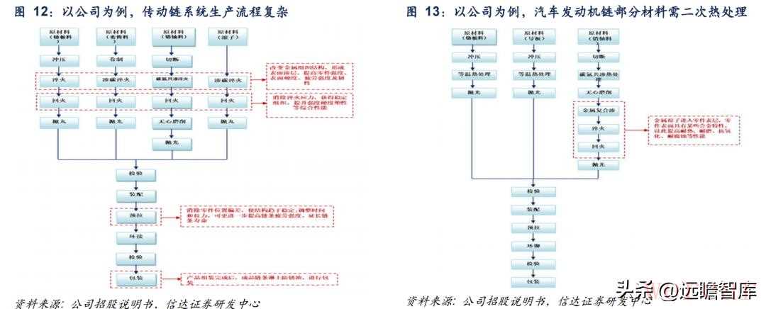 由于部分车辆发动机链需要达到和发动机相同的使用寿命,因此制造工艺和质量要求更为严苛,厂商将对其实施二次热处理,以获得更优的强度、硬度、耐磨性能以及耐热、耐腐蚀等特殊品质。