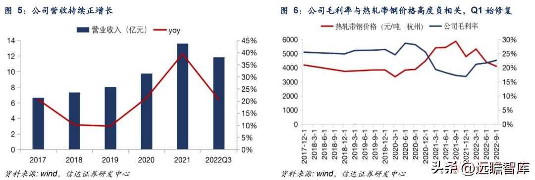 营收表现亮眼,盈利能力修复。近年来,公司收入持续正增长,营收由2017年的6.67亿元增至2021年的13.62亿元,CAGR19.54%,其中2021年yoy39.38%,创历史新高。