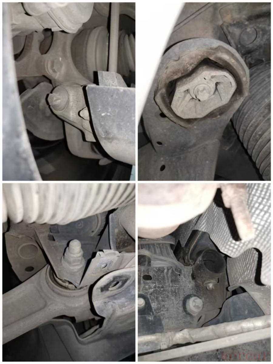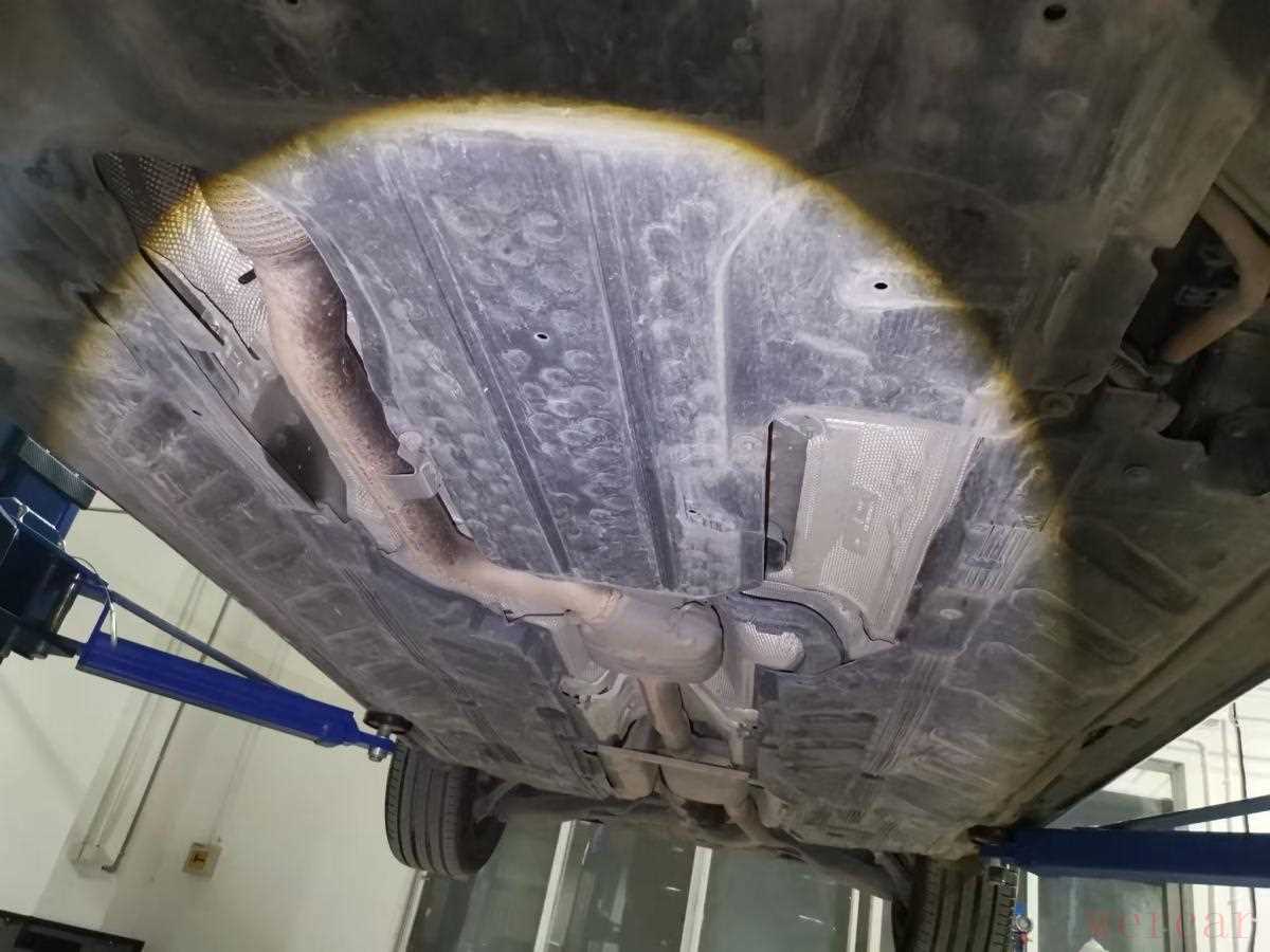 最后来看四轮悬挂系统,前后副车架没有拆卸痕迹,前后下摆臂没有拆卸痕迹,减震没有漏油损坏,三大件的工况没有任何问题。