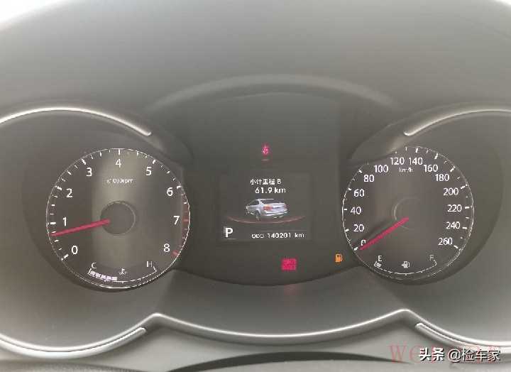 回到主驾驶位,打着火,仪表无报警,车辆怠速稳定,空调效果好,档位平顺,但是有间歇性抖动的情况。看看公里数,14万公里,根据内饰大致的磨损程度基本可以判定为实表,准确情况还需要进一步求证。其实根据公里数还可以对车辆的发动机工况,底盘悬挂等部分有一个大体的推断。