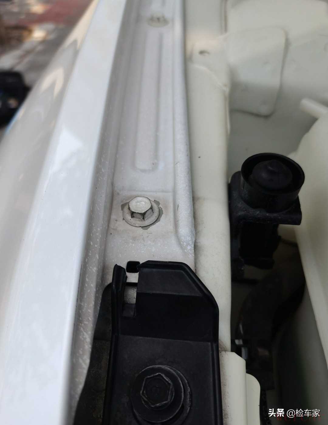 检查前纵梁和减震器座,漆面厚度和做工工艺都是原厂标准,没有受损修复的情况,也就排除了车头部位的严重撞击事故。