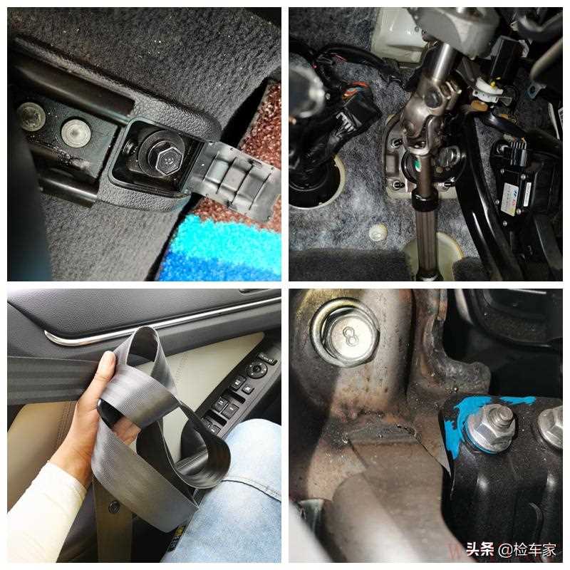 座椅骨架滑轨、方向管柱。安全带都是完好的,仪表台骨架有少许的生锈,看样子是时间长了自然生成的浮锈,并不是泡水造成的。